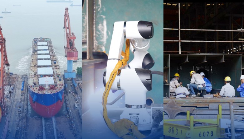 客户位于江苏,船舶建造订单已经排期到2029年,为了保质保量交付,车间常年都有4500多名焊工在一线奋战。“在船体结构中,存在许多空间非常狭小的舱室,焊工直接进去焊接非常困难、也不安全”,大族焊接机器人结构紧凑、小巧,运转灵活,协作安全,替代人工在不利条件下进行焊接作业,与焊工一起完成船舶建造任务。